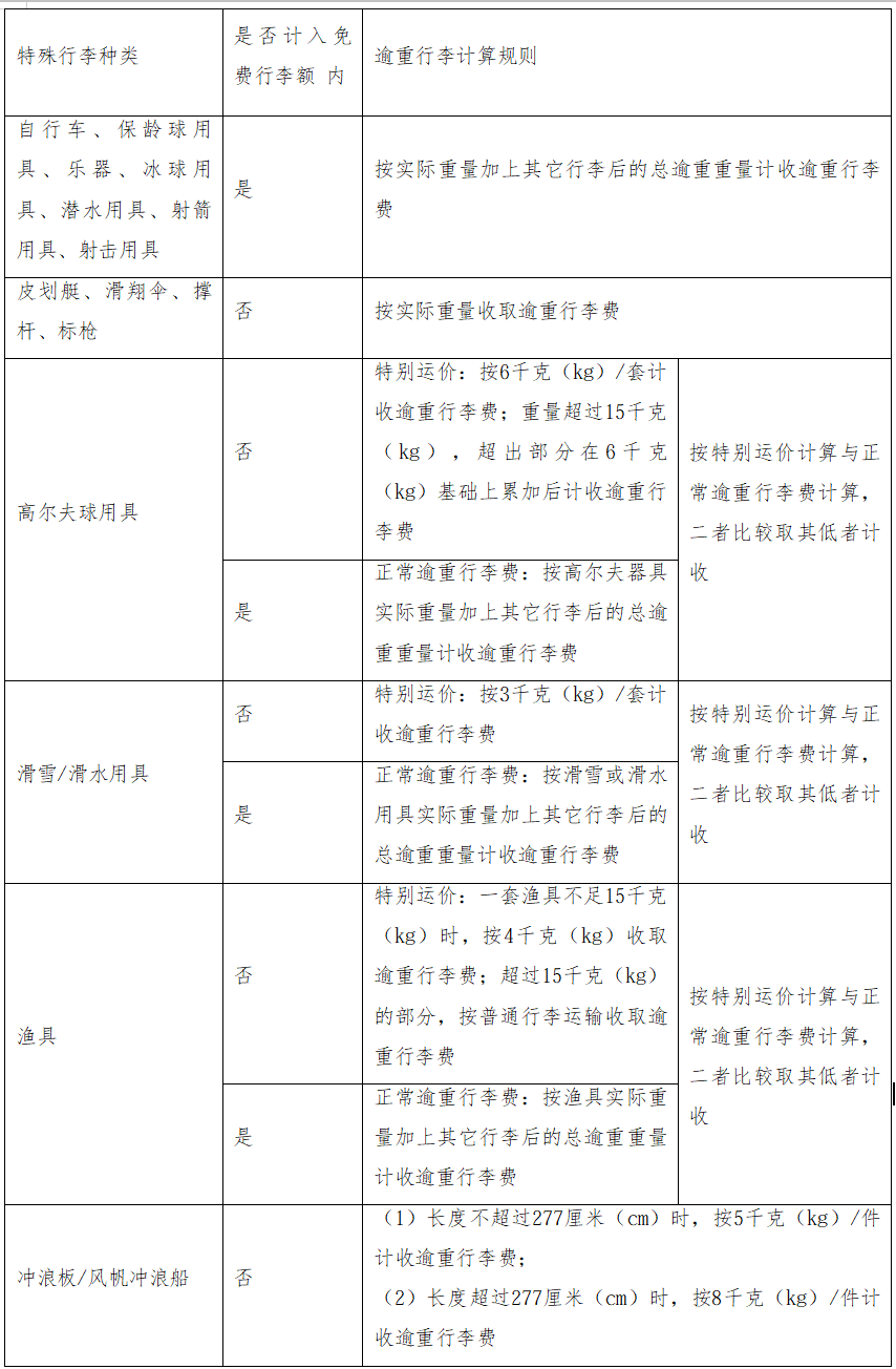 1.2.1.1逾重行李服务费:是指重量超过客票包含免费行李额部分的行李,需要支付的额外服务费。