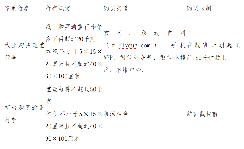 (3)线上购买:您可在线上以优惠价格购买最多20千克托运行李,线上价格以购买时展示为准。超出部分托运行李仅可在机场柜台购买。