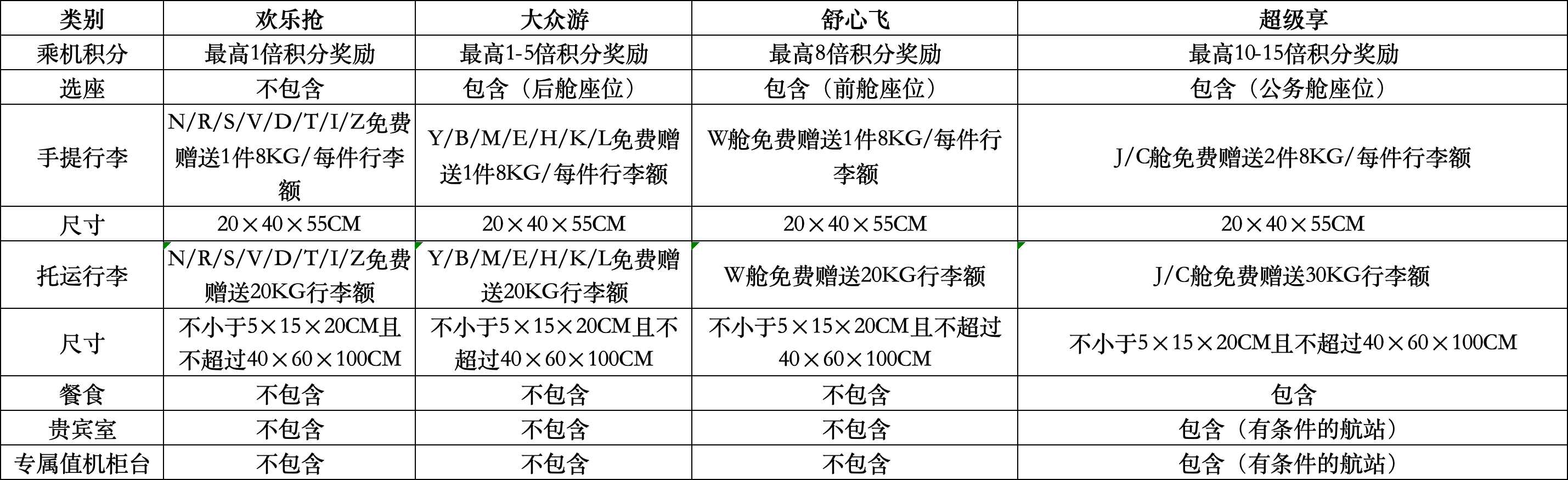 | 舱位 | J | C | W | Y | M | E | H | K | L | N | R | S | V | D | T | 其他舱位 |