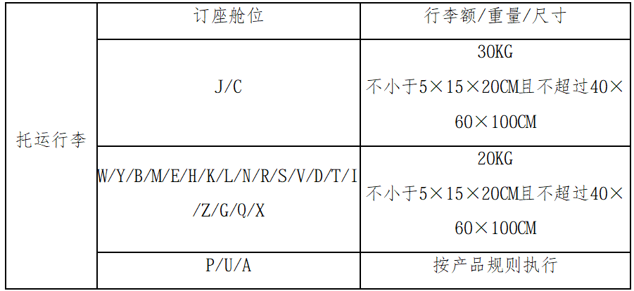 注:其他未尽事宜,按公司普通托运行李规则执行。
